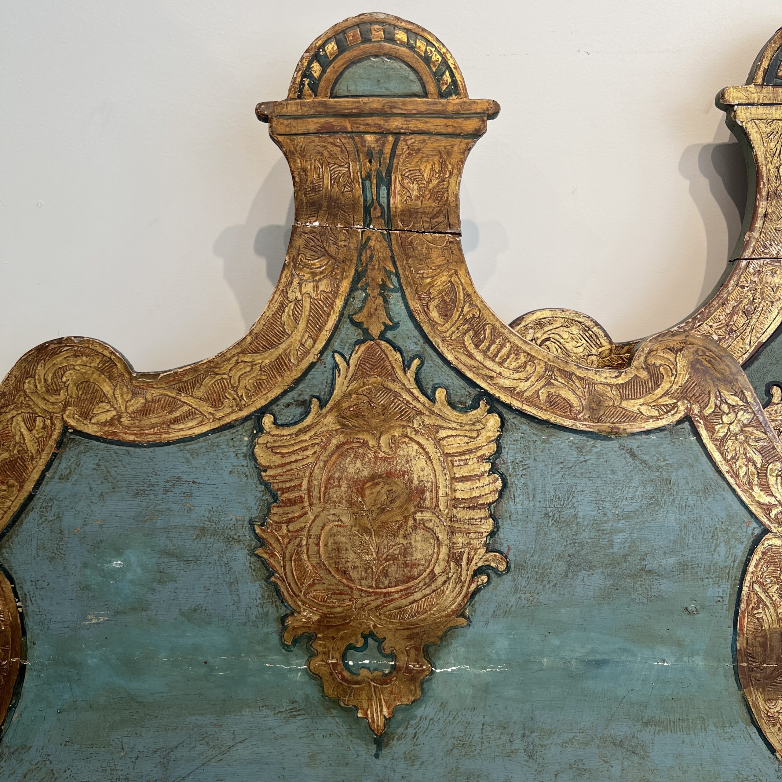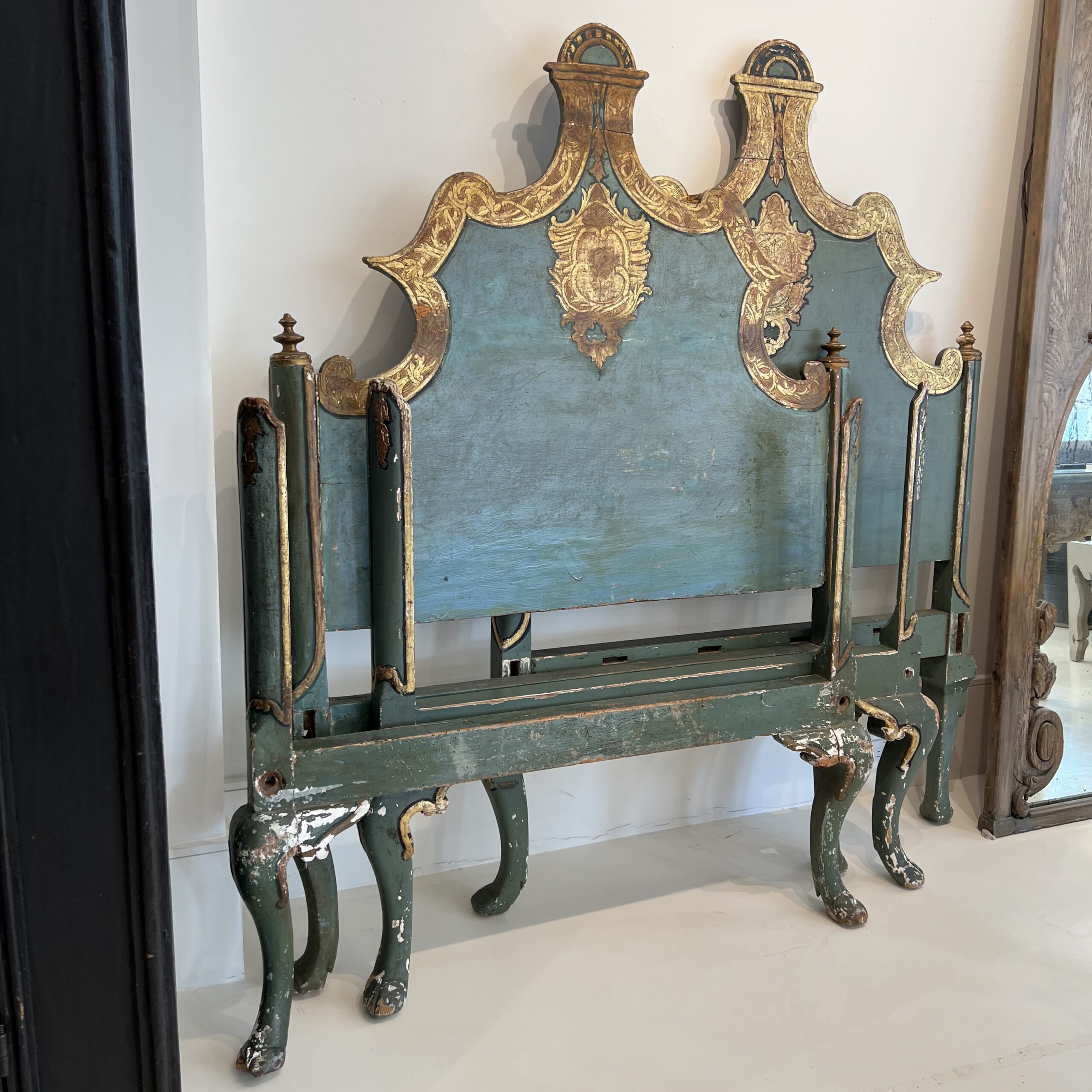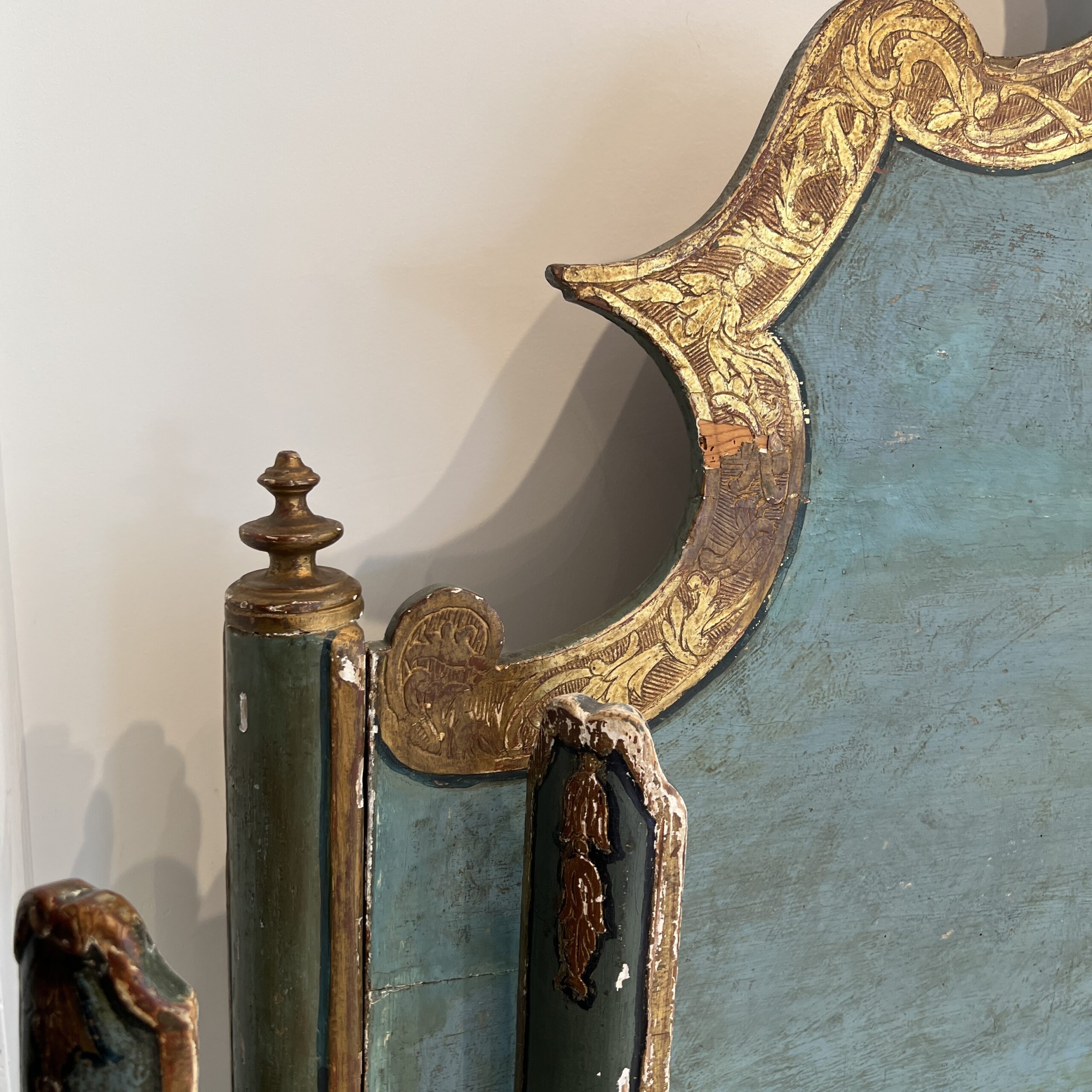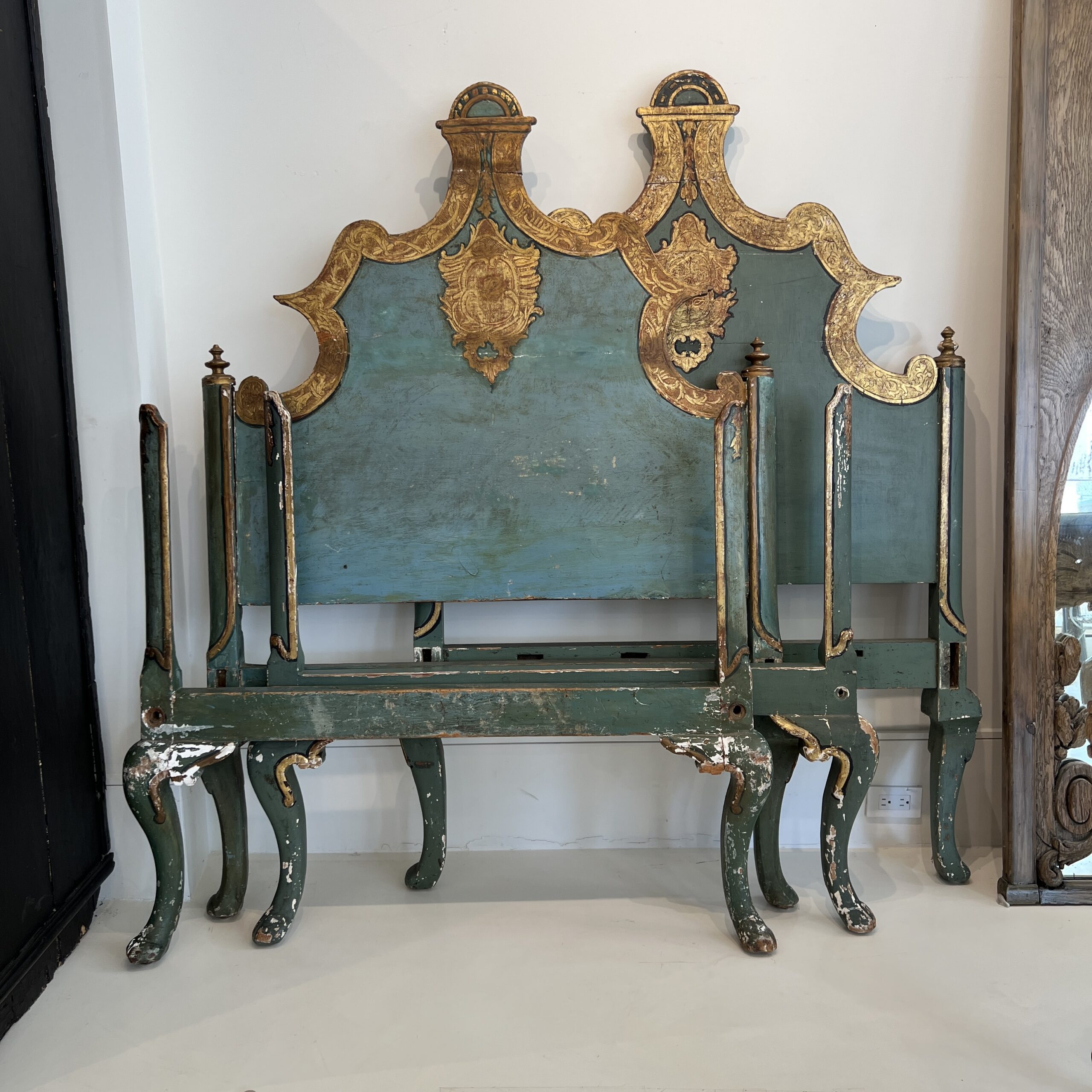 Venetian Style Pair of Painted & Parcel Gilt Twin Beds