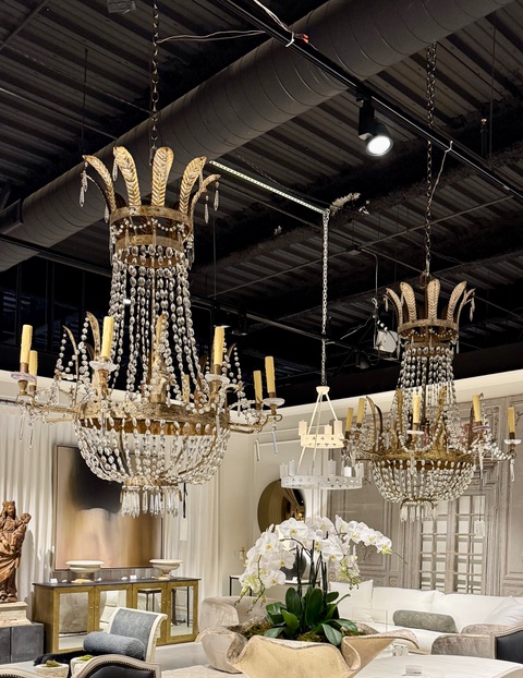 19th Century Italian Empire Gilded Iron & Crystal Chandelier (2 available)