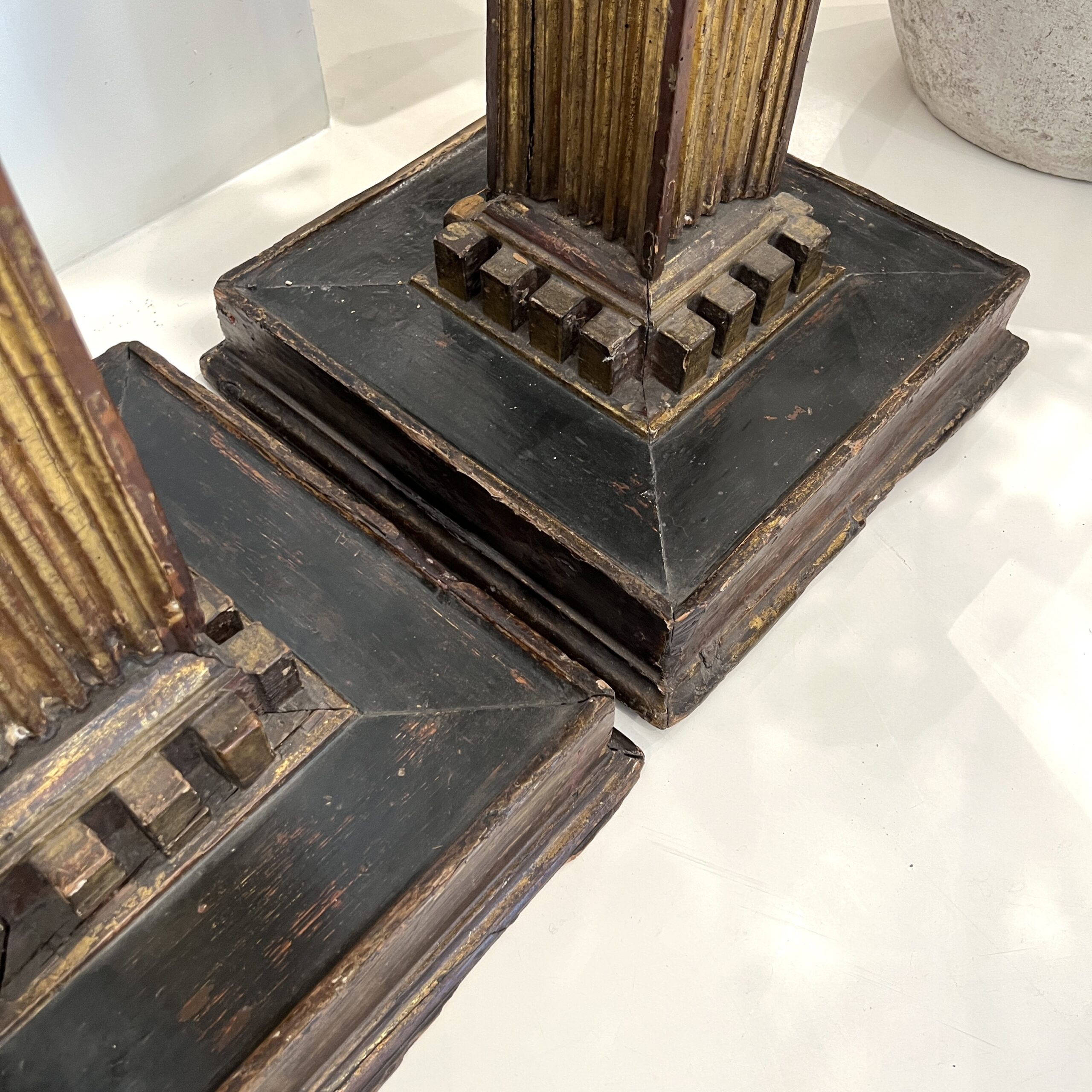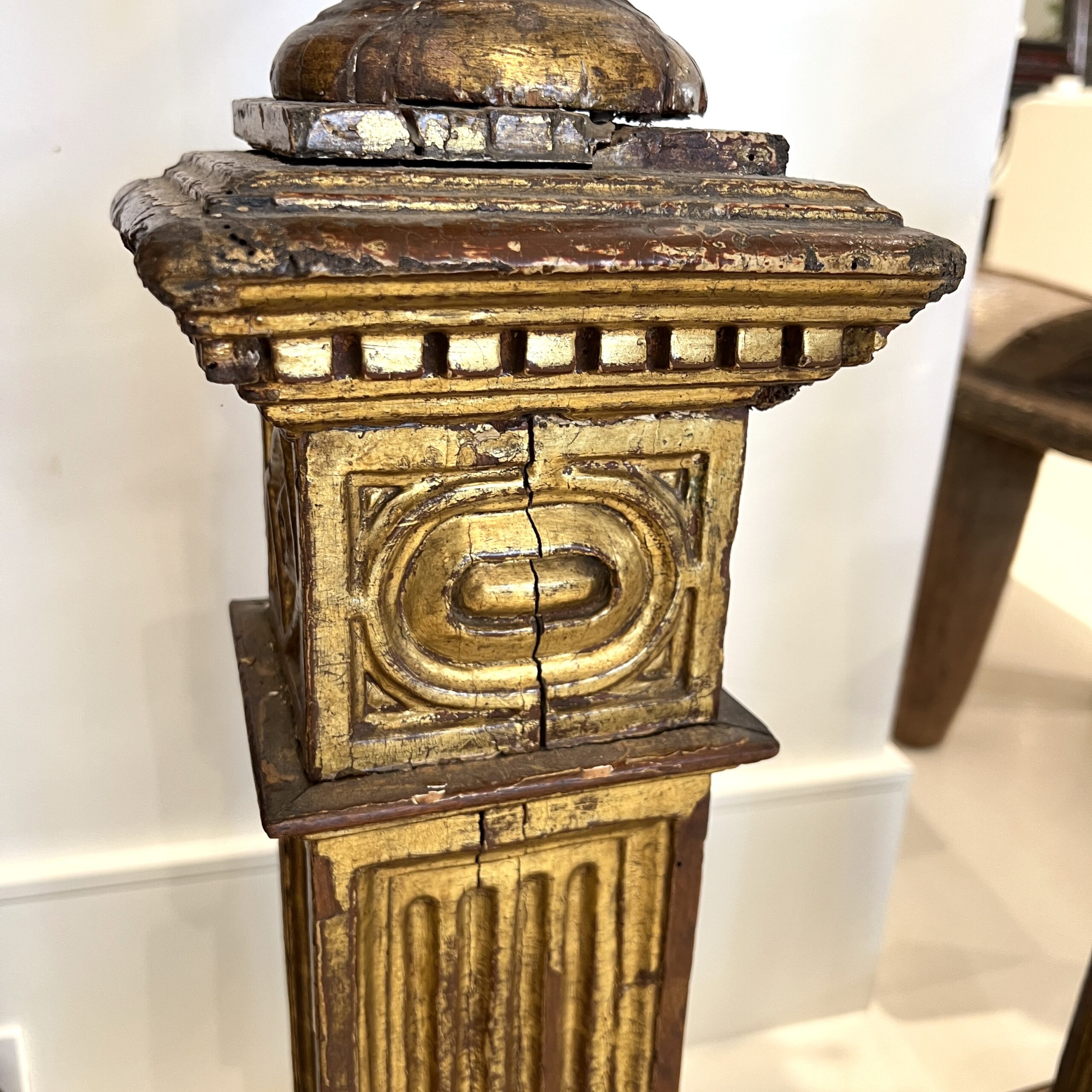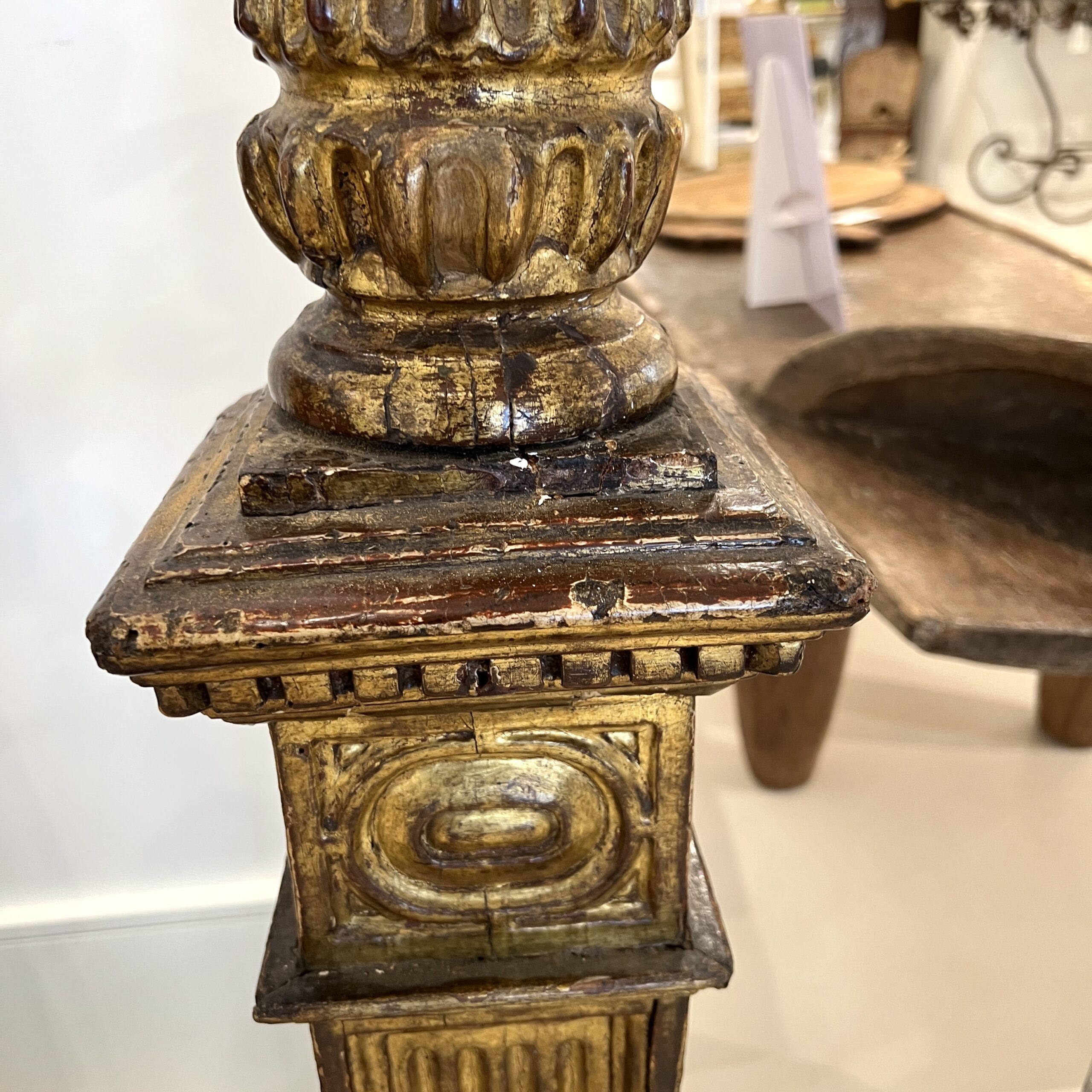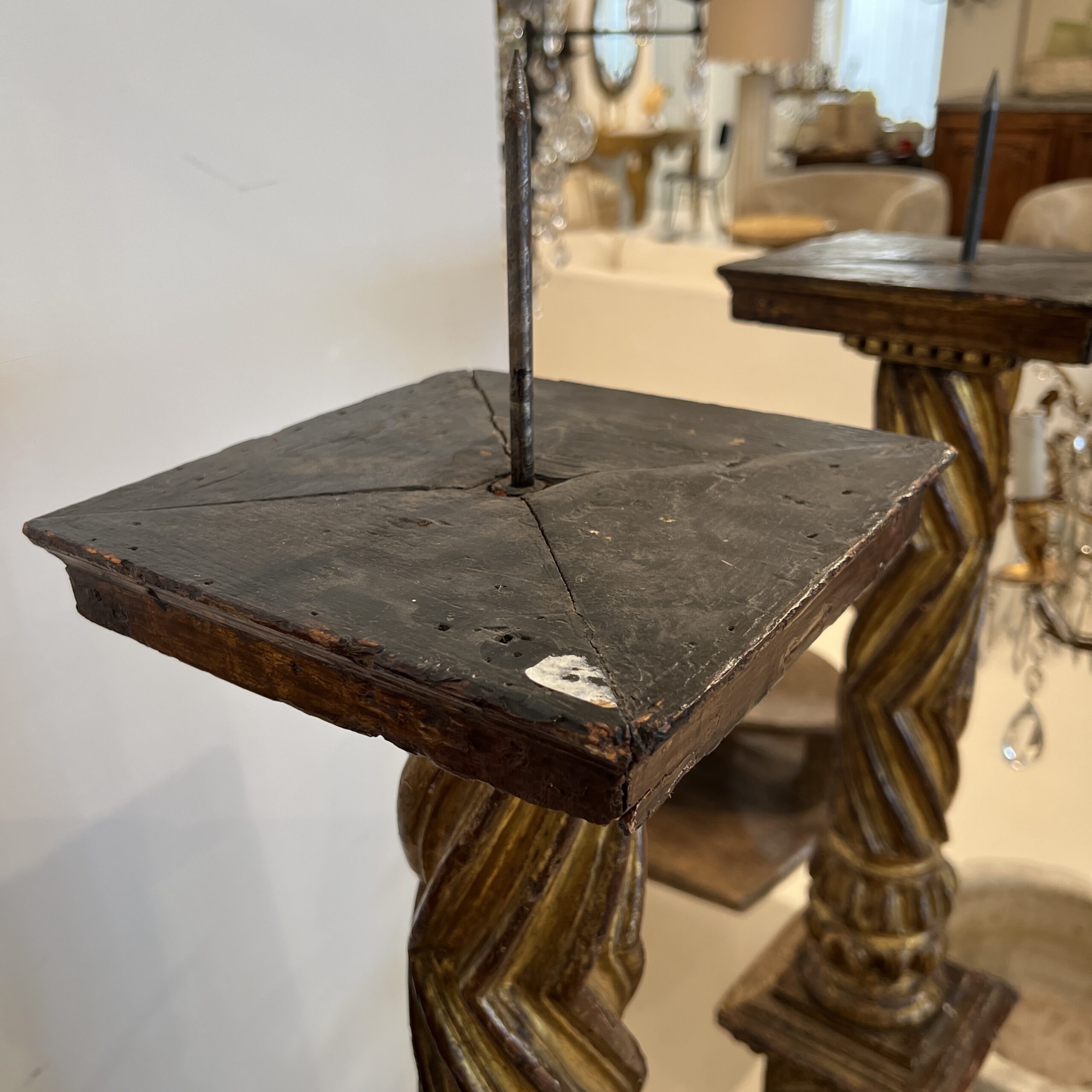 Antique Italian column fragment candlesticks fashioned from 16th century wood. Add a stately elegance to your space. Could be converted as a floor lamp.