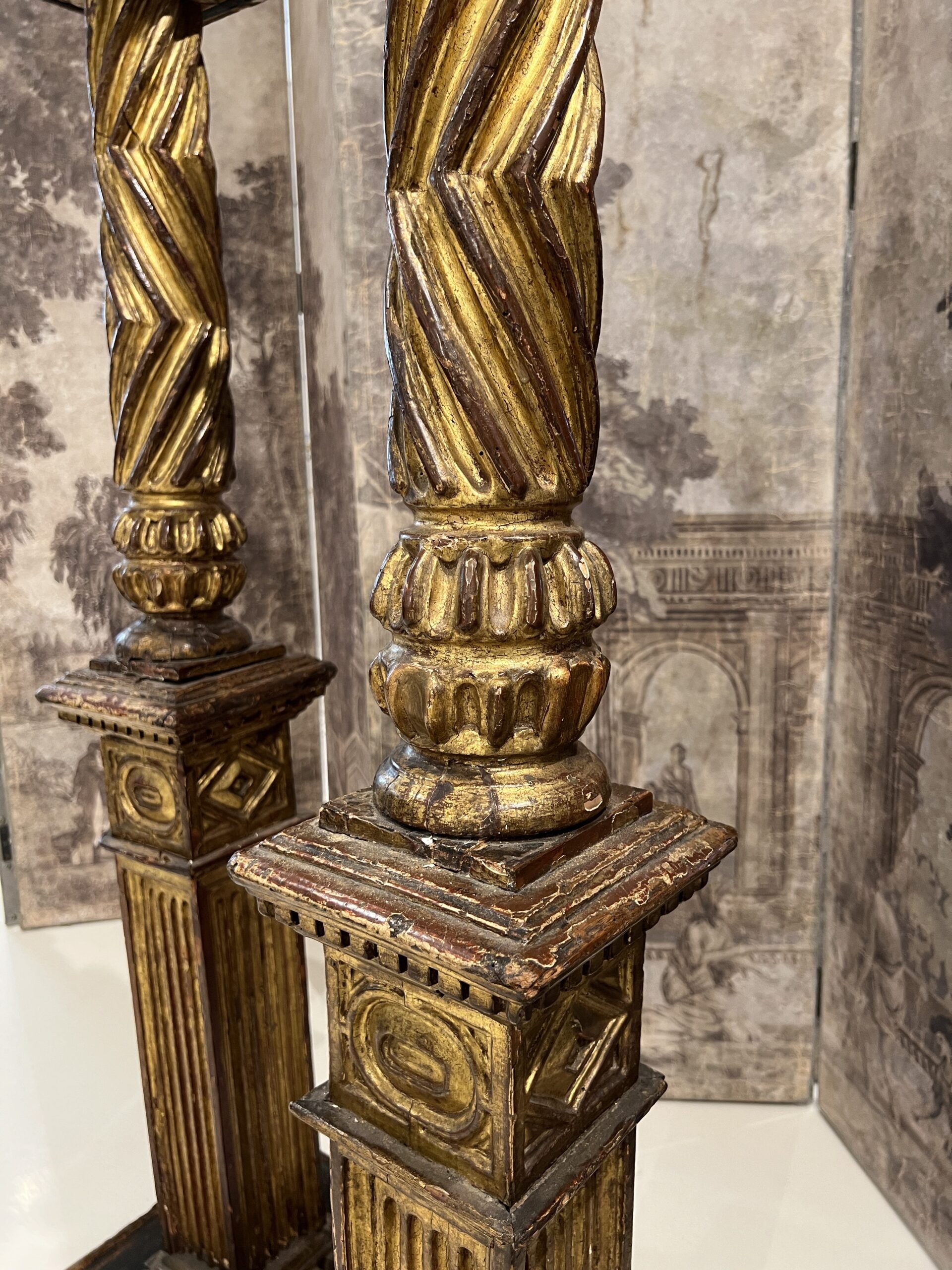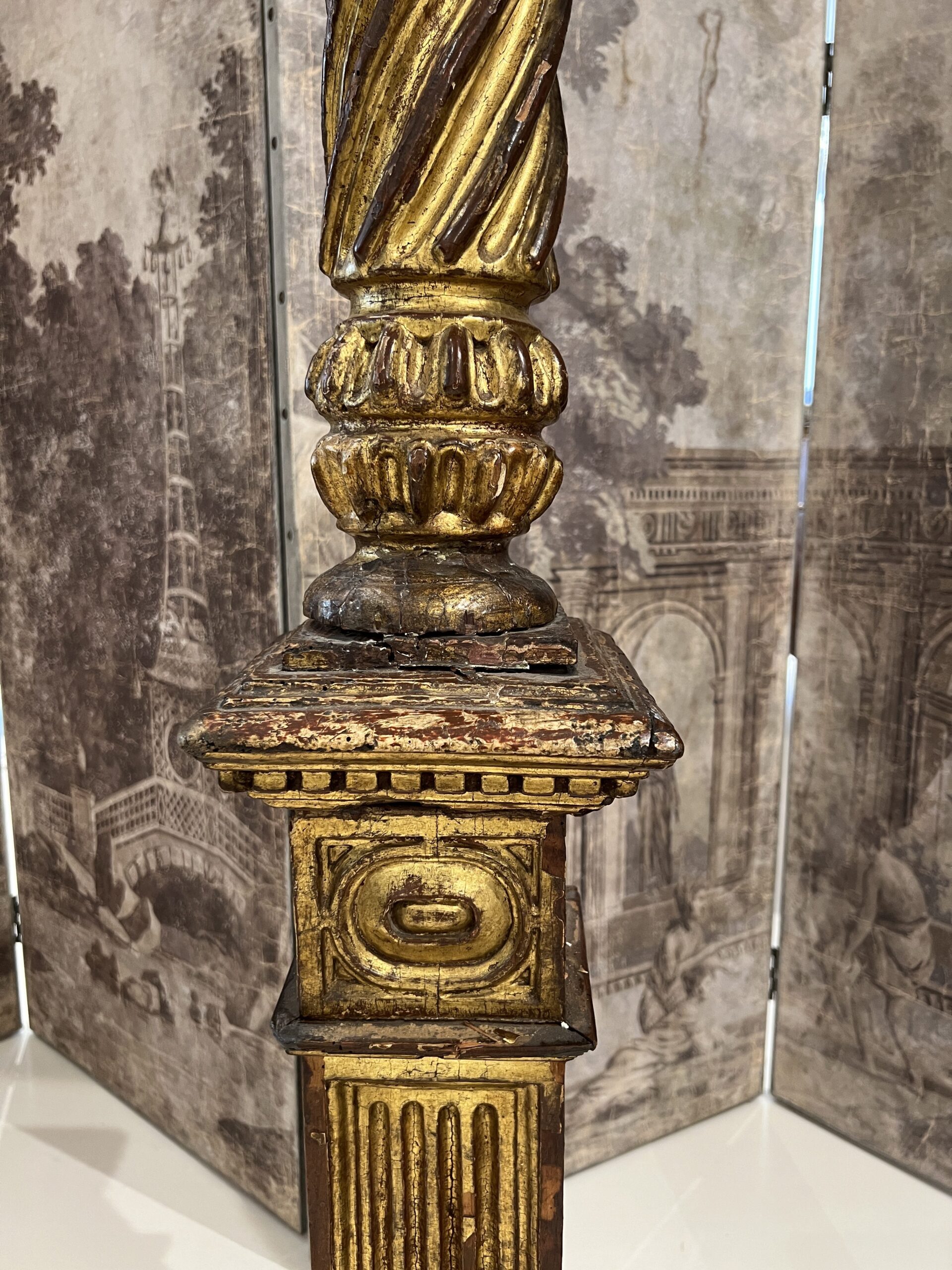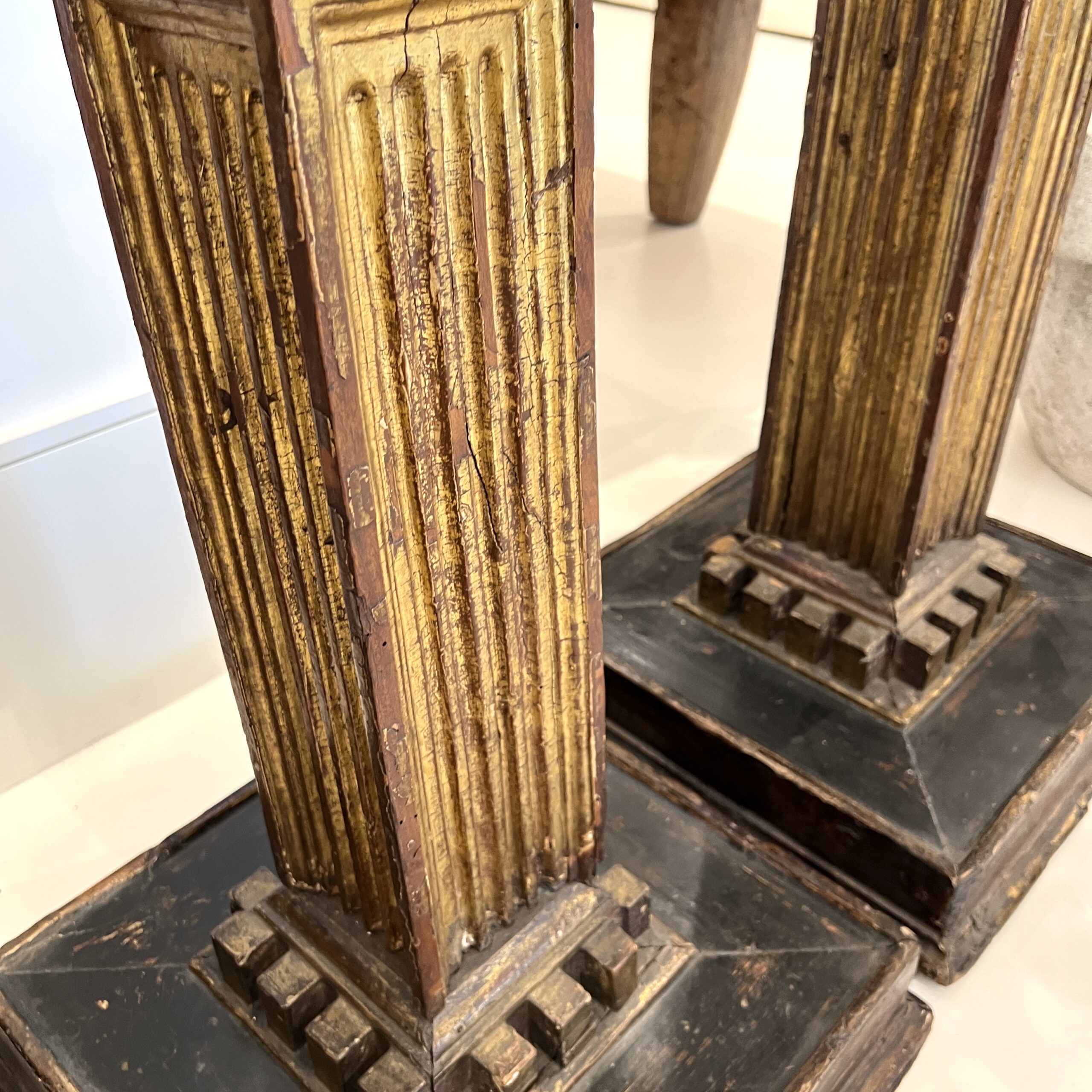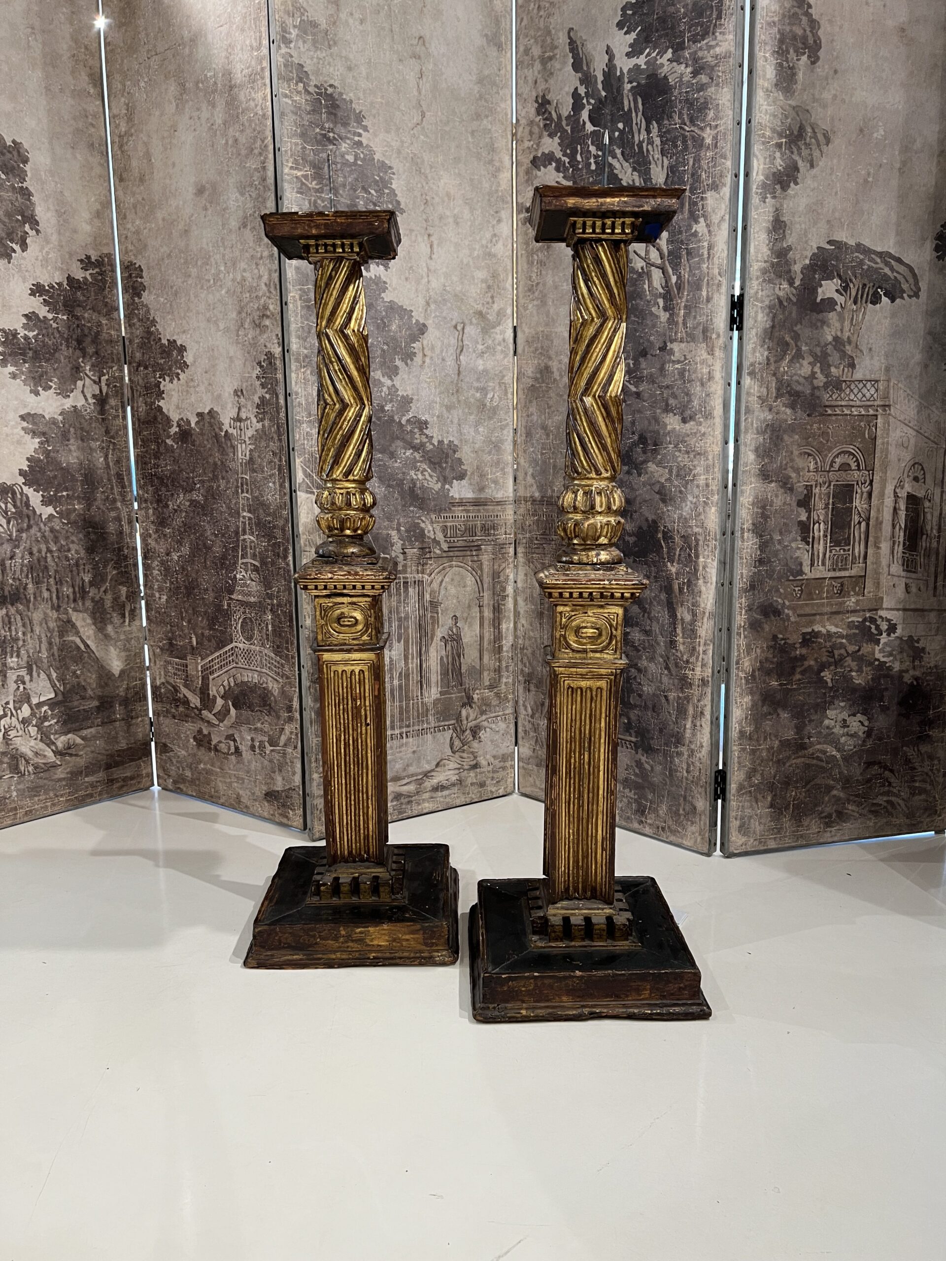 Antique Italian column fragment candlesticks fashioned from 16th century wood. Add a stately elegance to your space. Could be converted as a floor lamp.