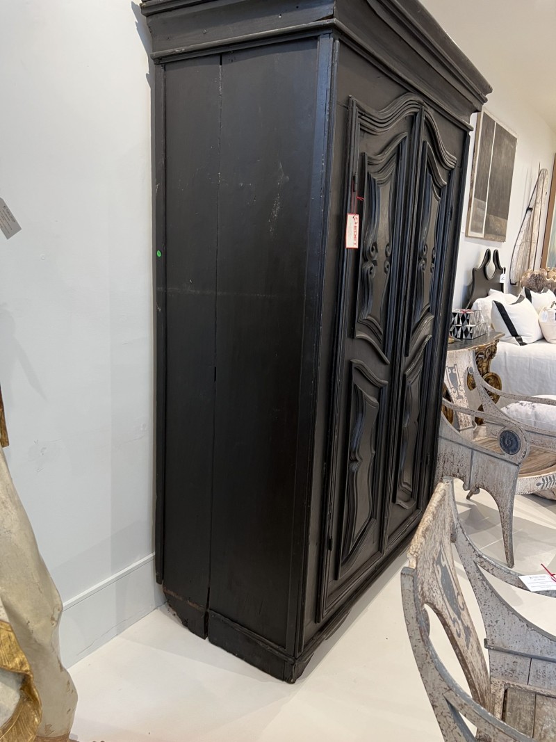 Make a strong statement with this stunning all black wardrobe/armoire. The austere splendor of this piece will anchor any room and provide a focal point. It is also an amazing storage solution.