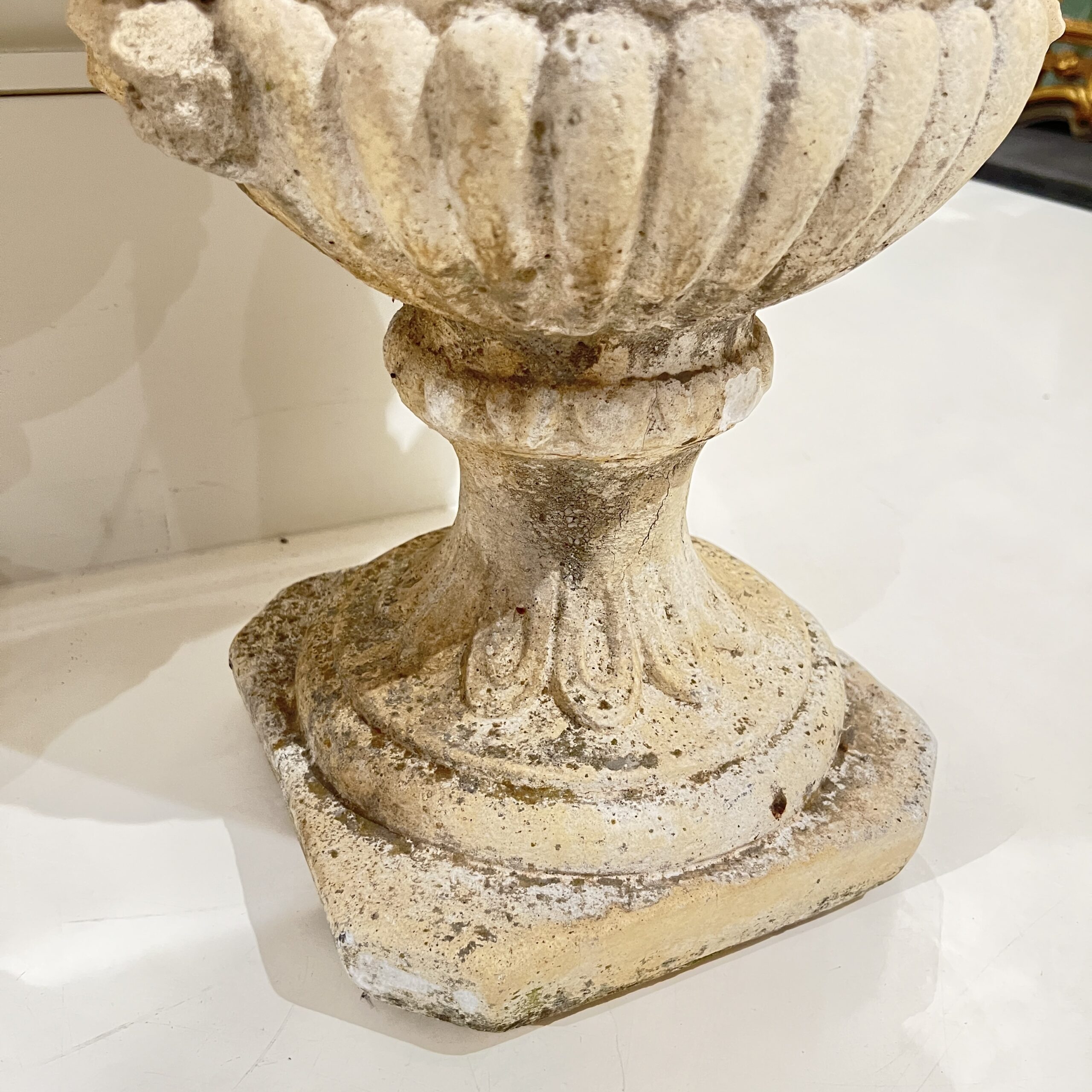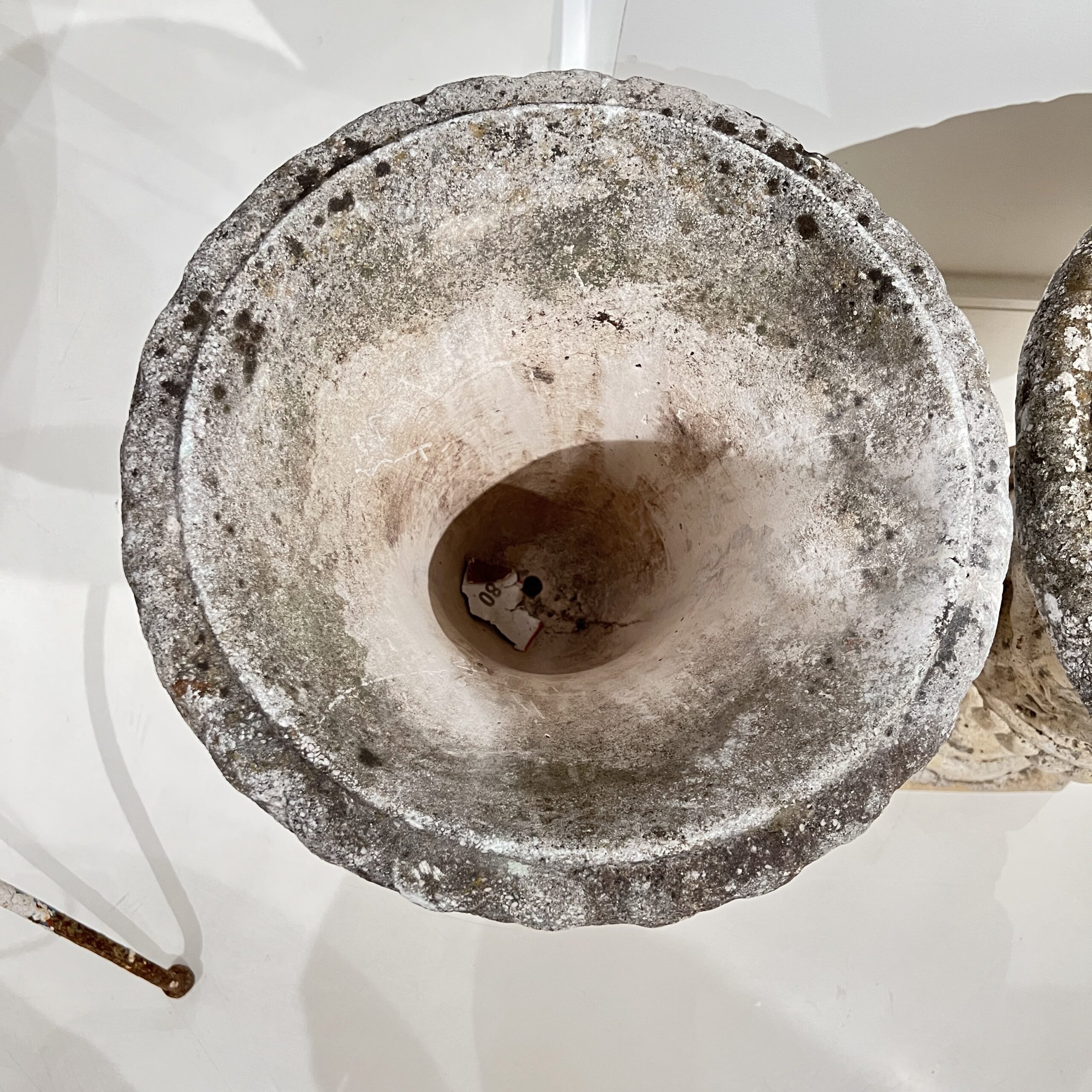 A sturdy and stylish pair of concrete jardinieres adorned with delicate neoclassical reliefs, featuring motifs like garlands and urns—perfect for adding architectural charm and timeless elegance to garden or interior spaces.
