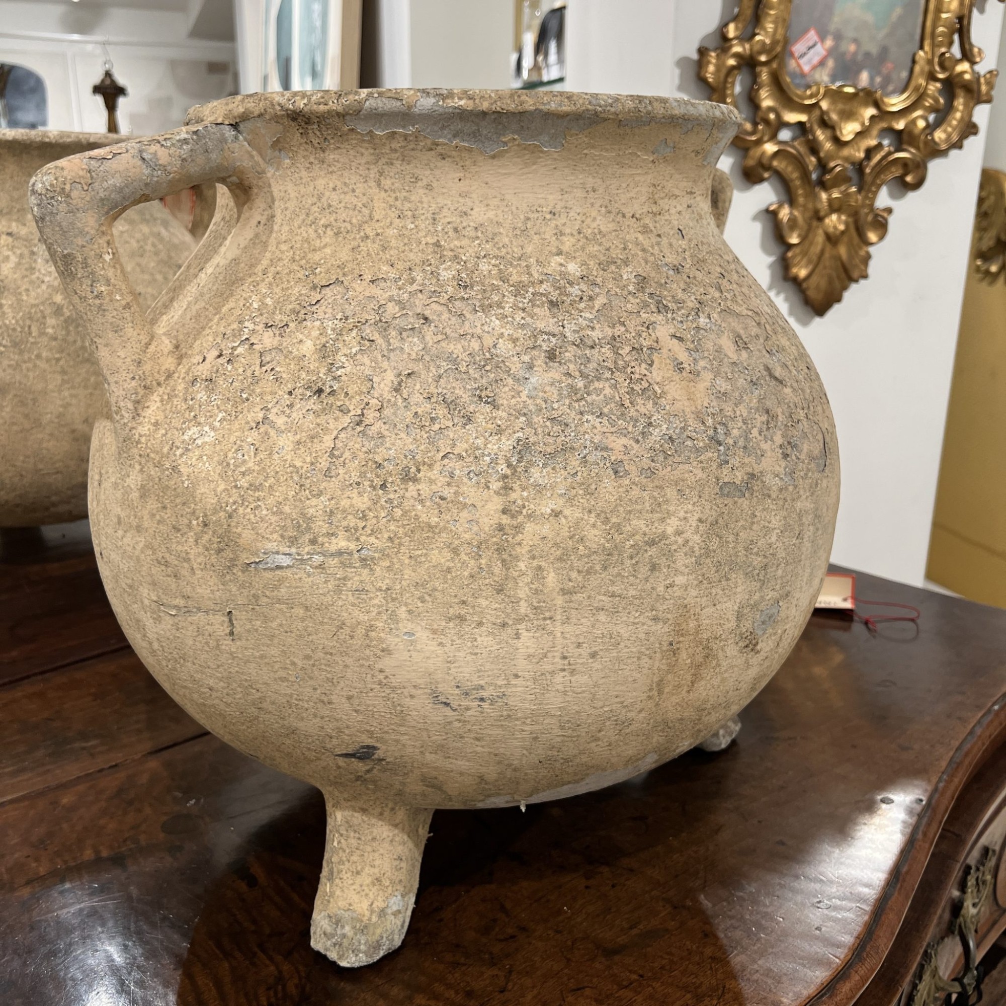 Pair of Willy Guhl Marmite Planters – Iconic mid-century Swiss design, these sculptural fiber cement cauldron or “Marmite” planters feature a weathered patina and a bold, industrial form. Their tapered silhouette and durable material make them perfect for both indoor and outdoor spaces.