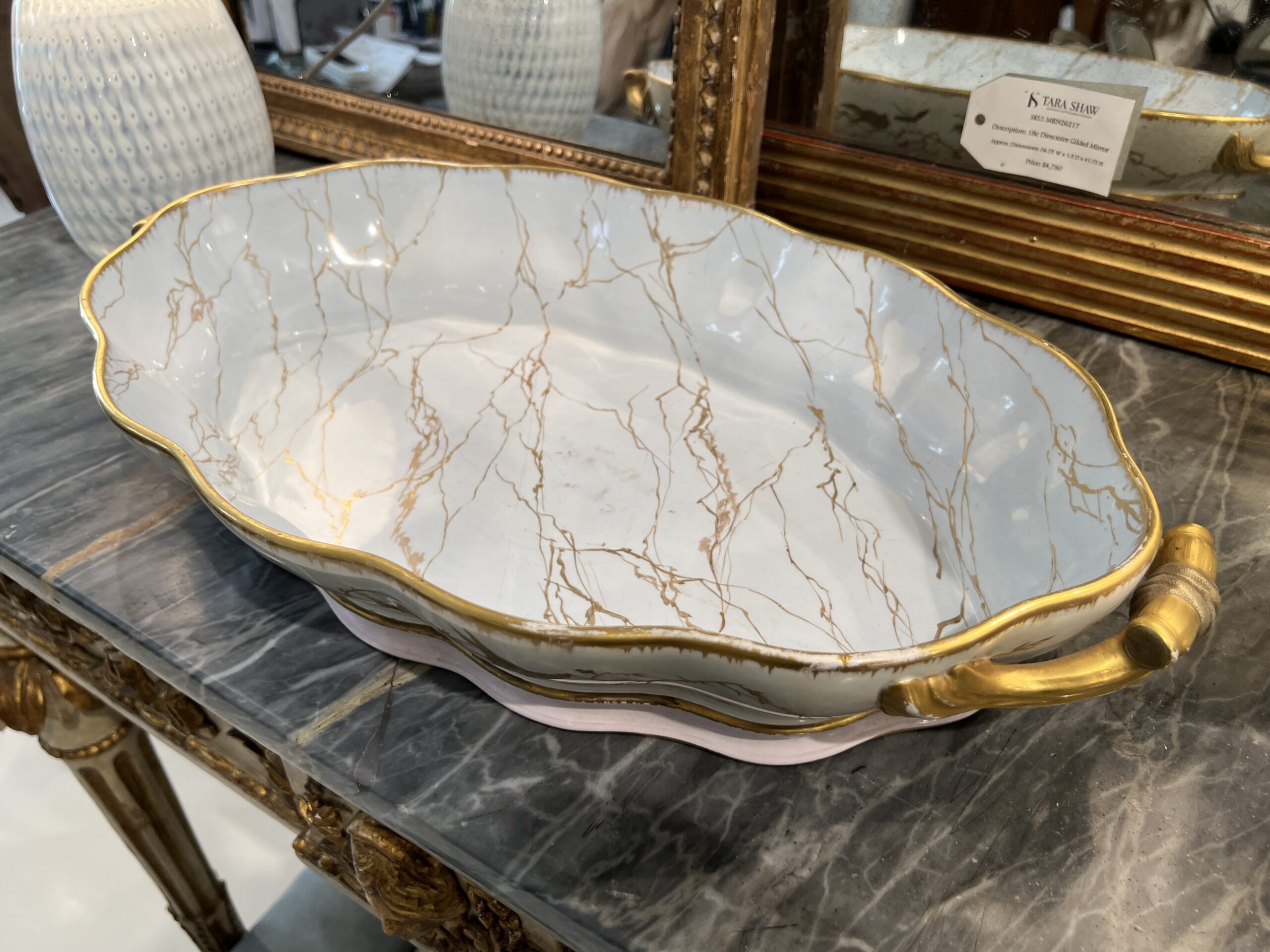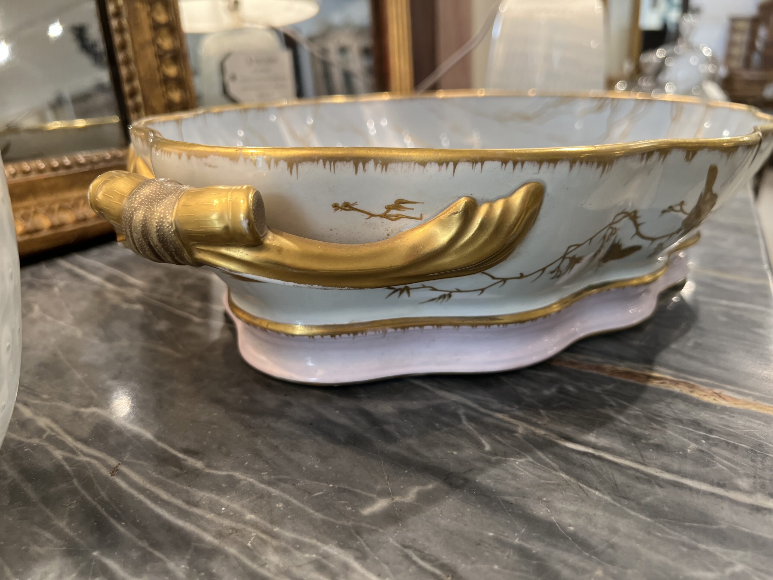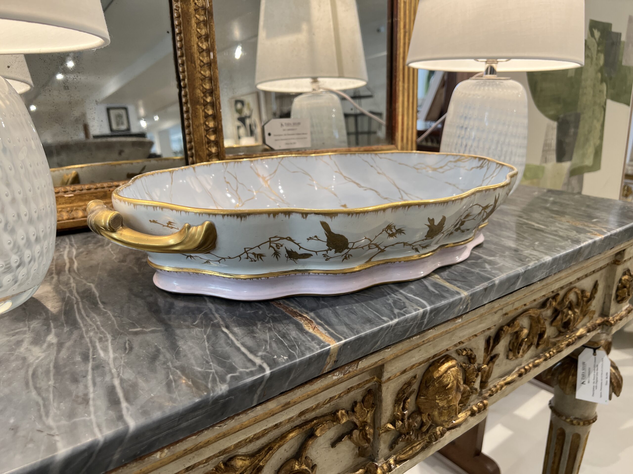 Large antique French china serving dish with makers mark (Vor Etienne & Fils). 19th Century Limoges decorated by store employees of Etienne & Fils on Rue Paradis.