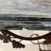 The iron bases are intricately designed with detailed grape motifs, showcasing the exceptional craftsmanship and artistic flair of French metalwork. The grapevine details, with their twisting vines and delicate clusters of grapes, add a touch of nature-inspired beauty and historical charm. The hand-forged ironwork, finished in an antique patina, enhances the consoles’ vintage appeal and ensures they stand out as statement pieces in any room.
