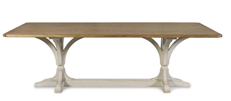 | Notes | Trestle base finished in a distressed off-white with a natural wood-stained plank top |