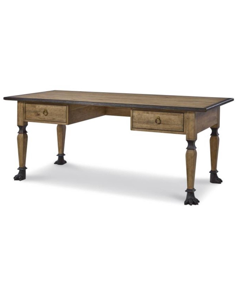 The Grande Italian walnut desk with ebonized details and carved feet is a reflection of Italy’s rich tradition of fine woodworking and classical design, particularly prevalent during the Renaissance and Baroque periods. The use of walnut, a favored wood for furniture due to its durability and beautiful grain, is typical of high-quality Italian craftsmanship. The ebonized detailing, which involves darkening the wood, adds contrast and elegance, a technique often used in fine furniture to highlight intricate carvings or architectural elements. The carved feet, possibly depicting animal paws or classical motifs, are characteristic of Italian furniture design, which often draws inspiration from classical antiquity and incorporates symbolic and decorative elements.